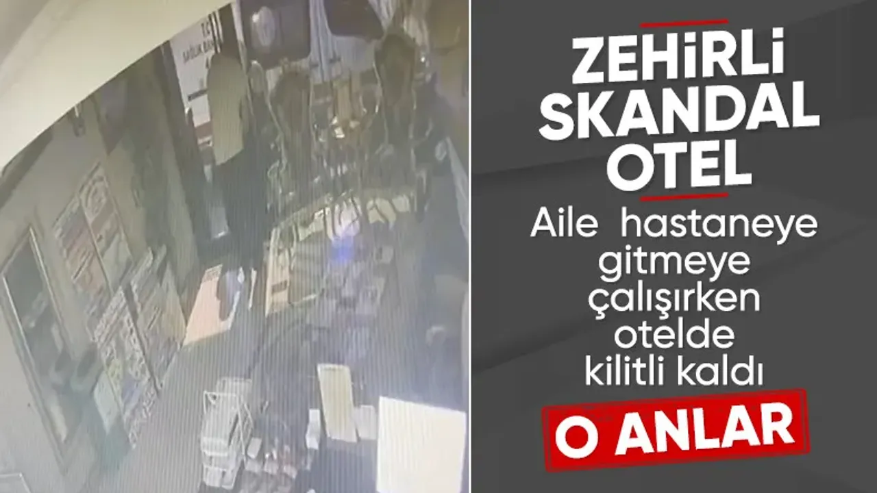 Öte yandan aile otele ambulans çağırıp odalarında aşağı indiklerinde, içeride kilitli kaldıkları anlar güvenlik kamerasına yansıdı.