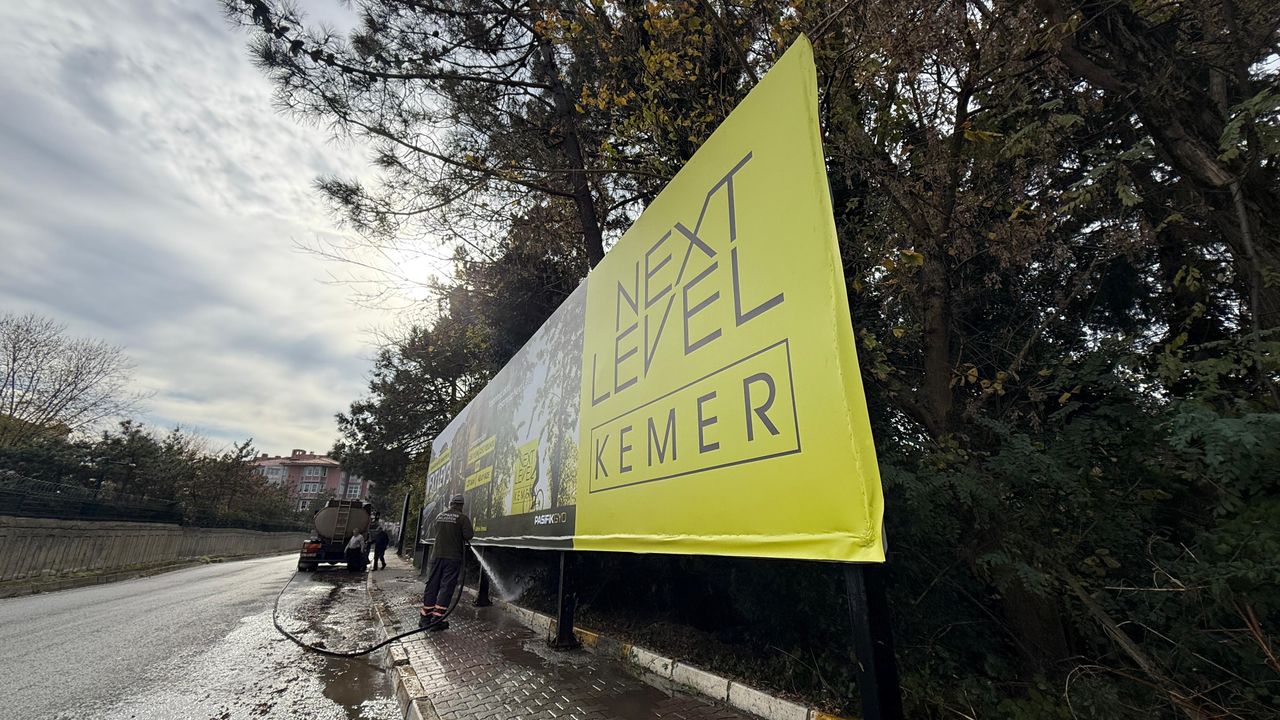 Göktürk’te çekilen görüntülerde, bir temizlik personelinin reklam panosu çevresindeki kaldırım ve yol kenarını basınçlı su ile yıkadığı görülüyor. Çalışmanın, hem yayaların güvenliğini artırmak hem de mahalle genelindeki çevre düzenini iyileştirmek amacıyla düzenli olarak gerçekleştirildiği belirtildi.