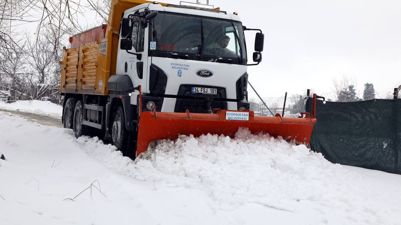 Eyüpsultan Belediyesi karla mücadele ekipleri gece saatlerinde başlayan yoğun kar yağışı ile birlikte ilçe genelinde 29 mahallede 52 araç ve 118 personelle görev aldı.