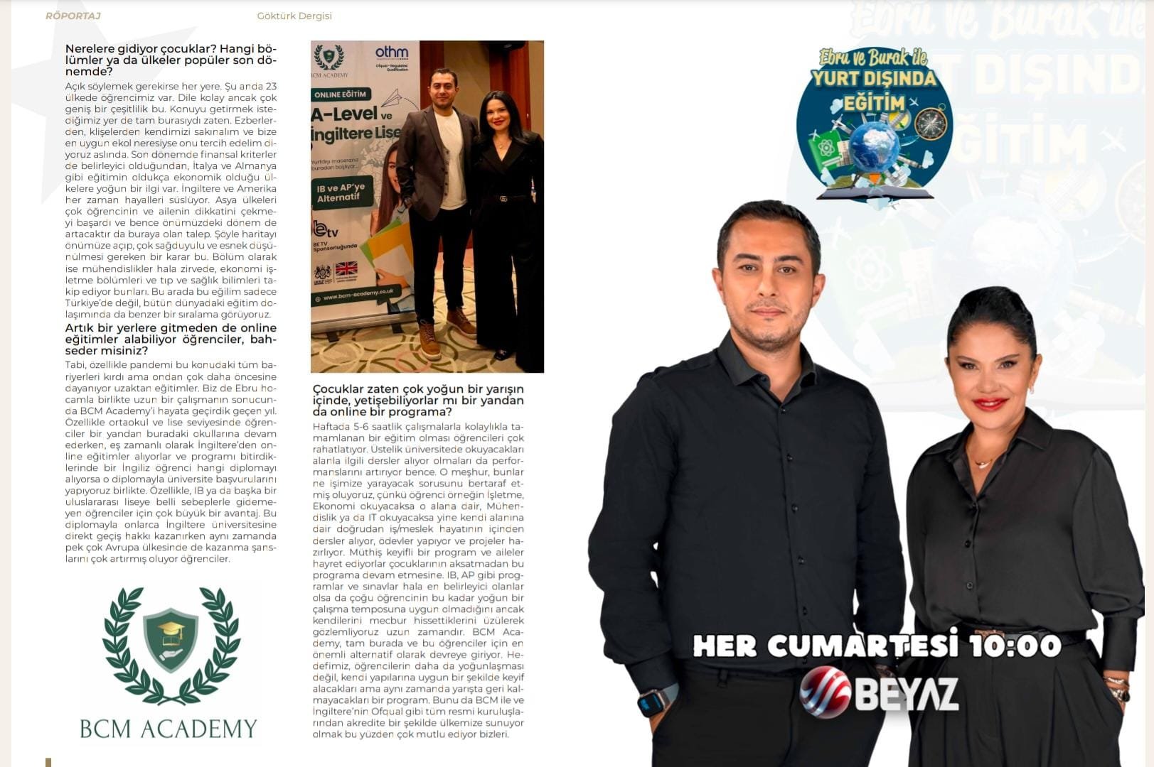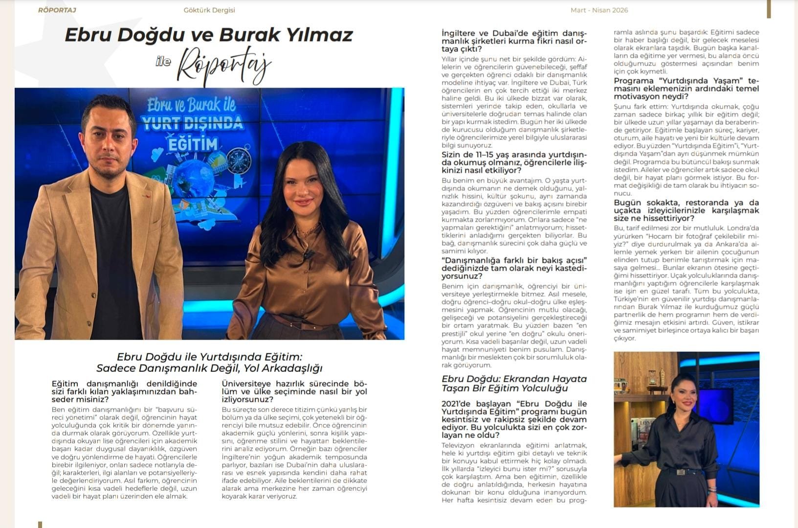 Ebru Doğdu & Burak Yılmaz Yurt Dışı Eğitimine dair bilinmeyenleri ve çok yönlü bilgileri ile dolu dolu anlatımlarıyla Göktürk Dergisi'nde...