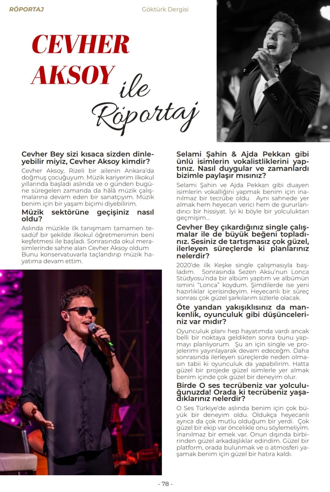 Kapak konuklarımızın röportajı yanı sıra güzel sesli Cevher Aksoy röportajı da dergimizin içeriğinde yer almaktadır.