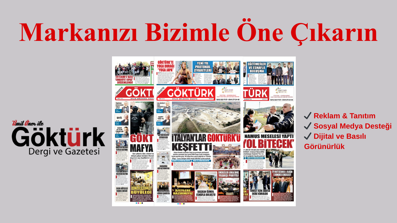 Siz de Göktürk Gazetesi’nde yer alarak markanızın bilinirliğini artırabilir, güvenilir bir yayın çatısı altında görünürlük kazanabilirsiniz.