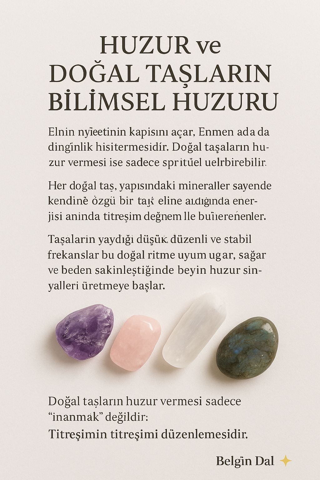 Huzur, insanın hem bedeninde hem de ruhunda aynı anda dinginlik hissetmesidir. Doğal taşların huzur vermesi ise sadece spritüel bir inanış değil; aynı zamanda bilimsel olarak da açıklanabilen bir titreşim olayıdır.