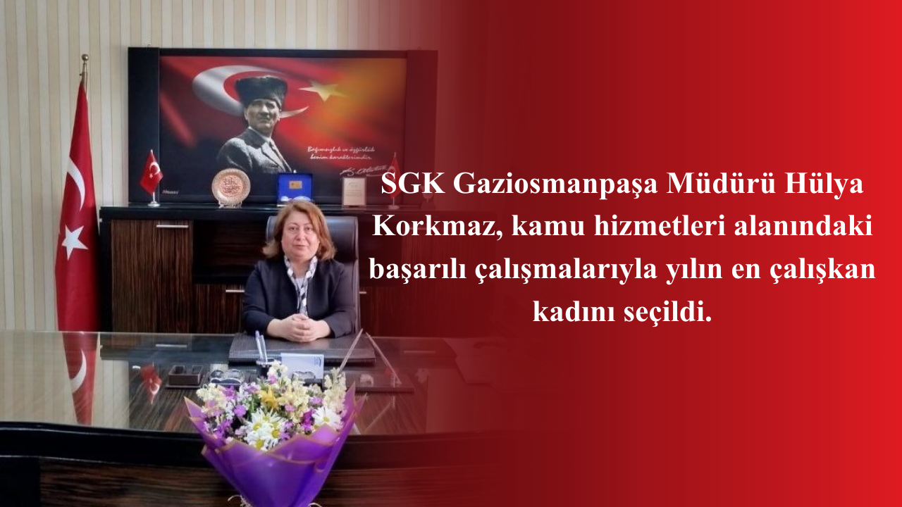 Kamu hizmetlerine sunduğu katkılar ve başarılı çalışmaları dolayısıyla SGK Gaziosmanpaşa Müdürü Hülya Korkmaz’ı tebrik ediyor, görevinde başarılarının artarak devam etmesini diliyoruz.