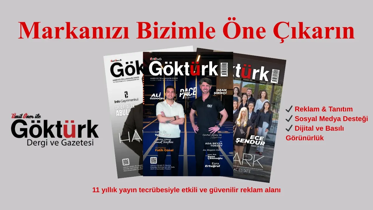 Siz de Göktürk Dergisi’nde yer alarak markanızı daha geniş kitlelere taşıyın, güvenilir ve saygın bir yayın çatısı altında öne çıkın.